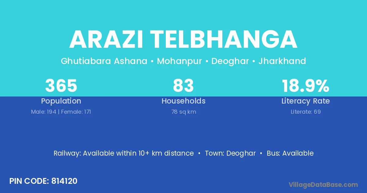 Deoghar is the nearest town to Arazi Telbhanga village for major economic activities