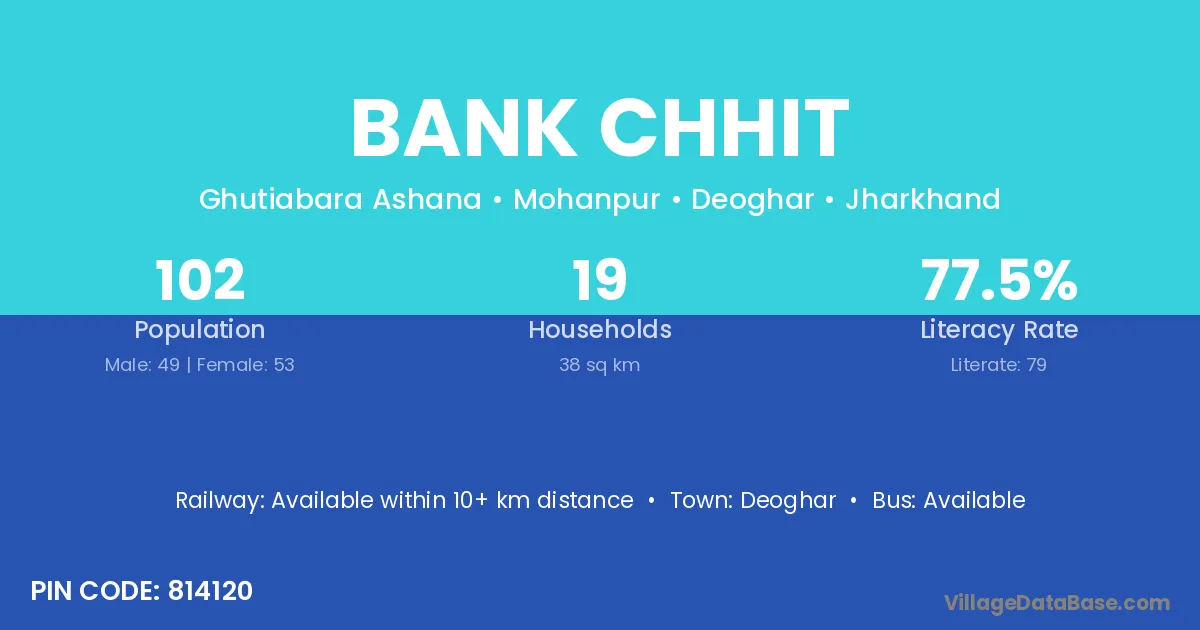 Deoghar is the nearest town to Bank Chhit village for major economic activities