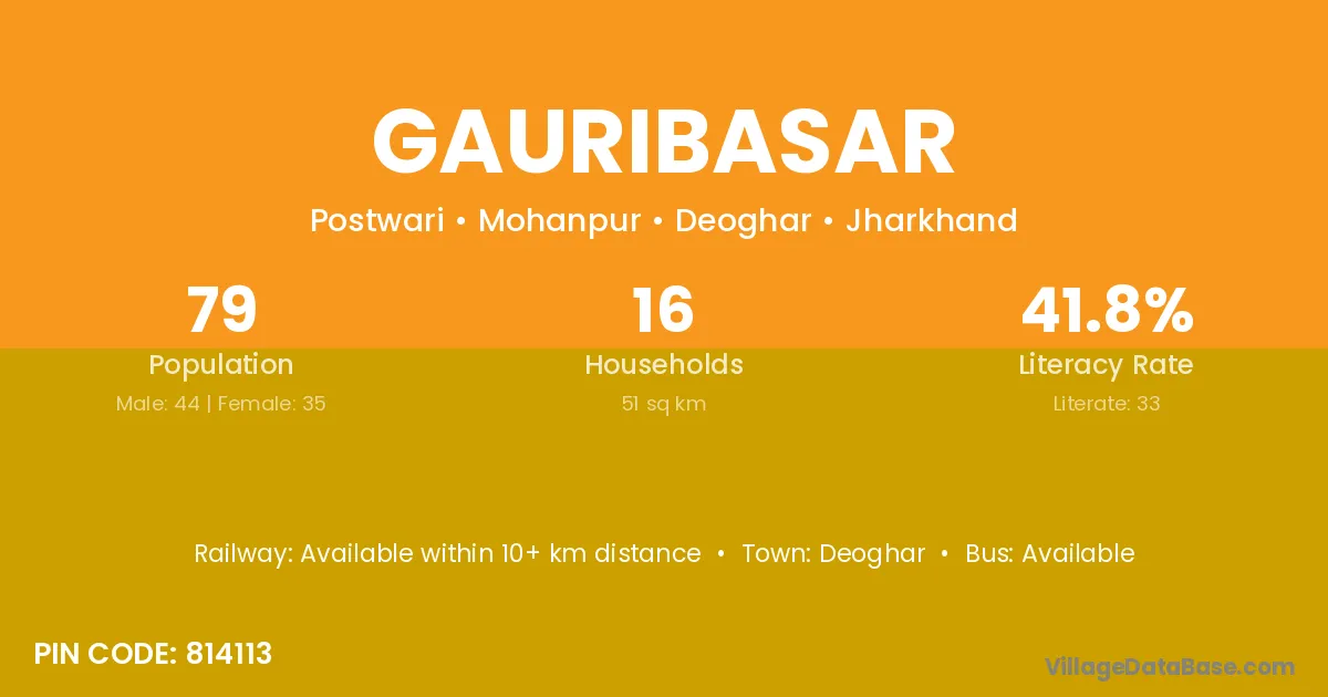 Gauribasar village has a total population of 79 people, of which 44 are males and 35 are females.