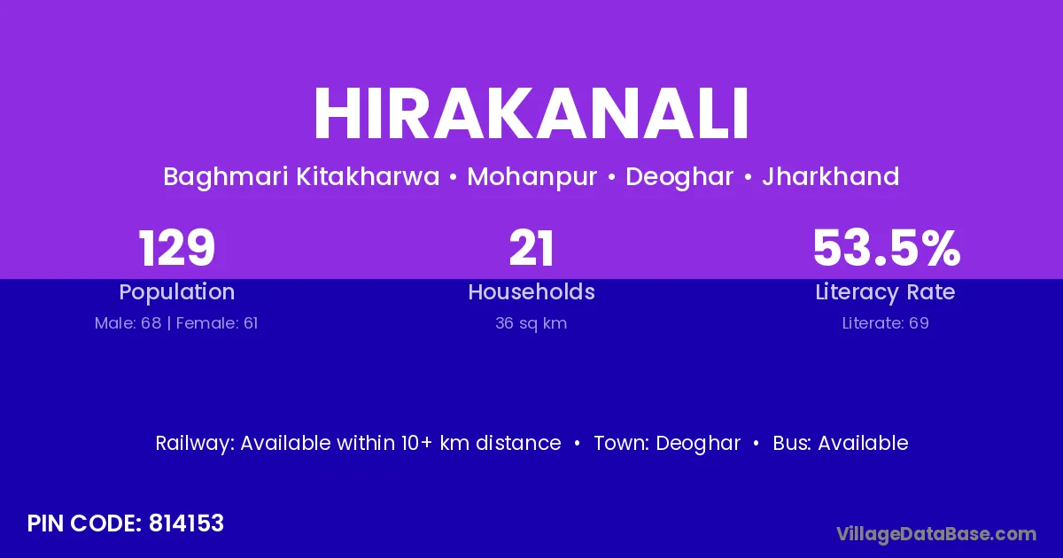 Deoghar is the nearest town to Hirakanali village for major economic activities
