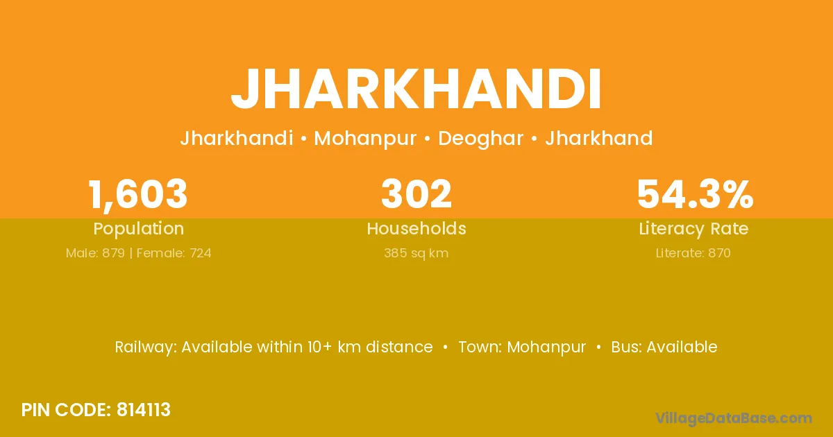 Jharkhandi village has a total population of 1,603 people, of which 879 are males and 724 are females.