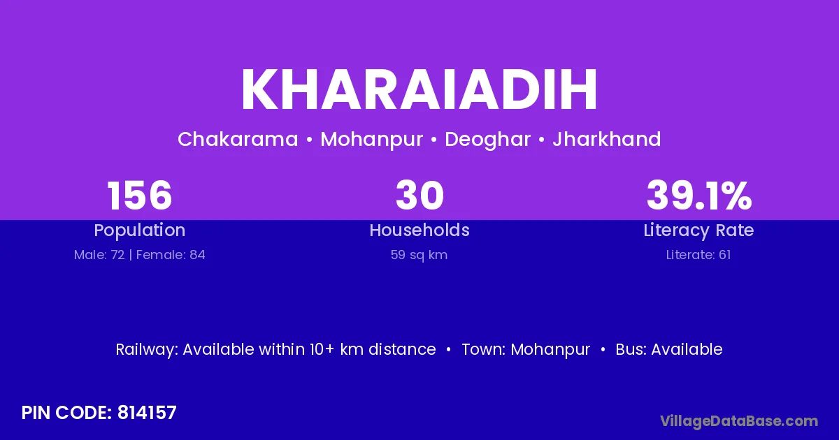 According to Census 2011 information, the village code of Kharaiadih village is 814157.