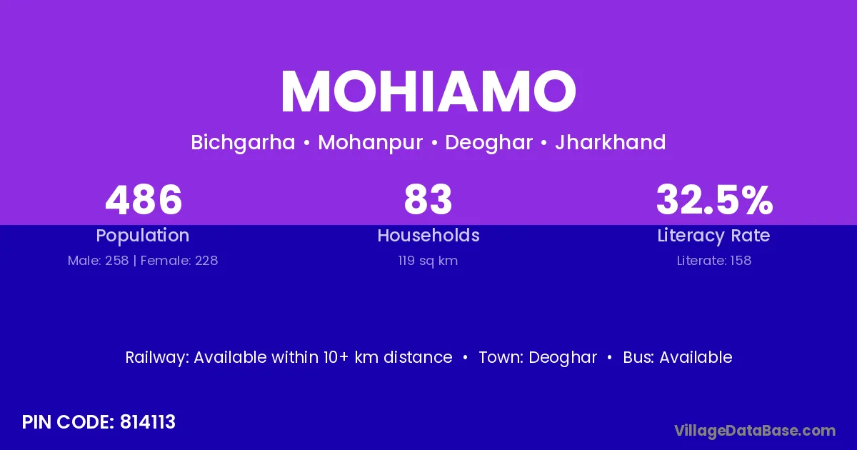 Deoghar is the nearest town to Mohiamo village for major economic activities