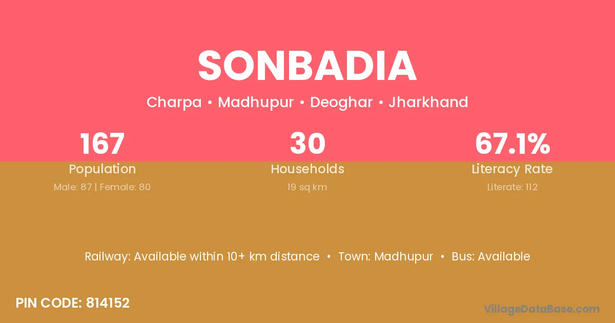 Deoghar is the nearest town to Sonbadia village for major economic activities