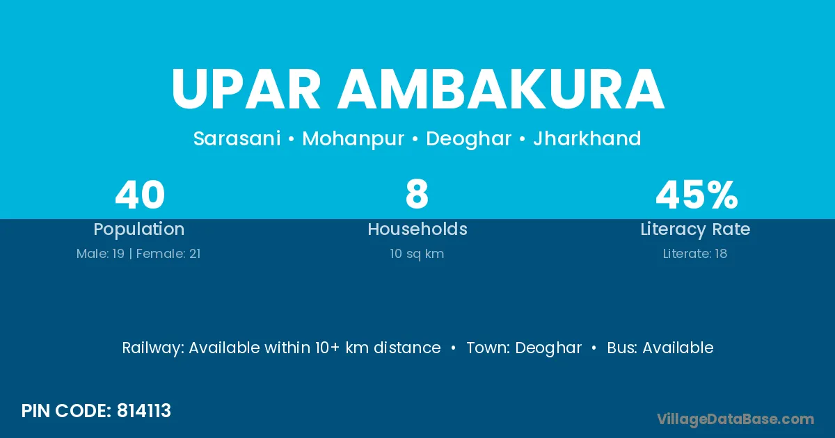 Deoghar is the nearest town to Upar Ambakura village for major economic activities