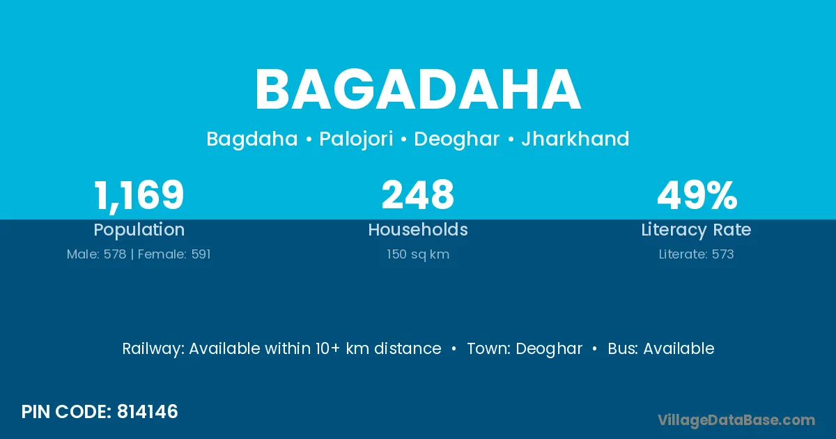 Deoghar is the nearest town to Bagadaha village for major economic activities