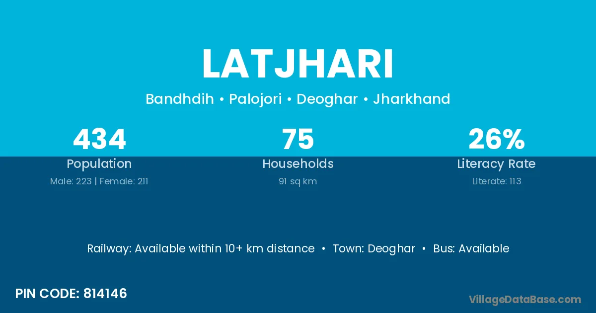 Latjhari village has a total population of 434 people, of which 223 are males and 211 are females.