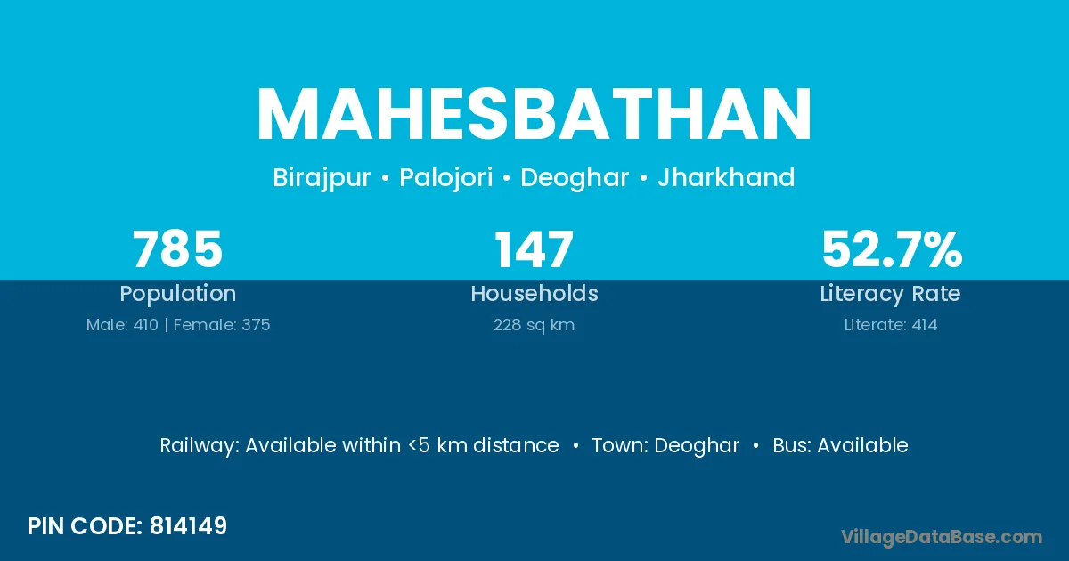 Deoghar is the nearest town to Mahesbathan village for major economic activities