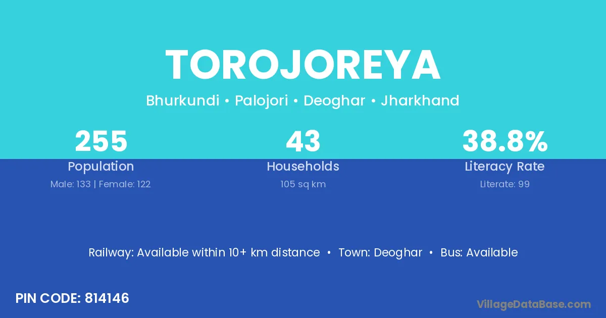 Torojoreya village has a total population of 255 people, of which 133 are males and 122 are females.