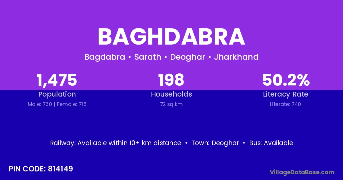 Deoghar is the nearest town to Baghdabra village for major economic activities