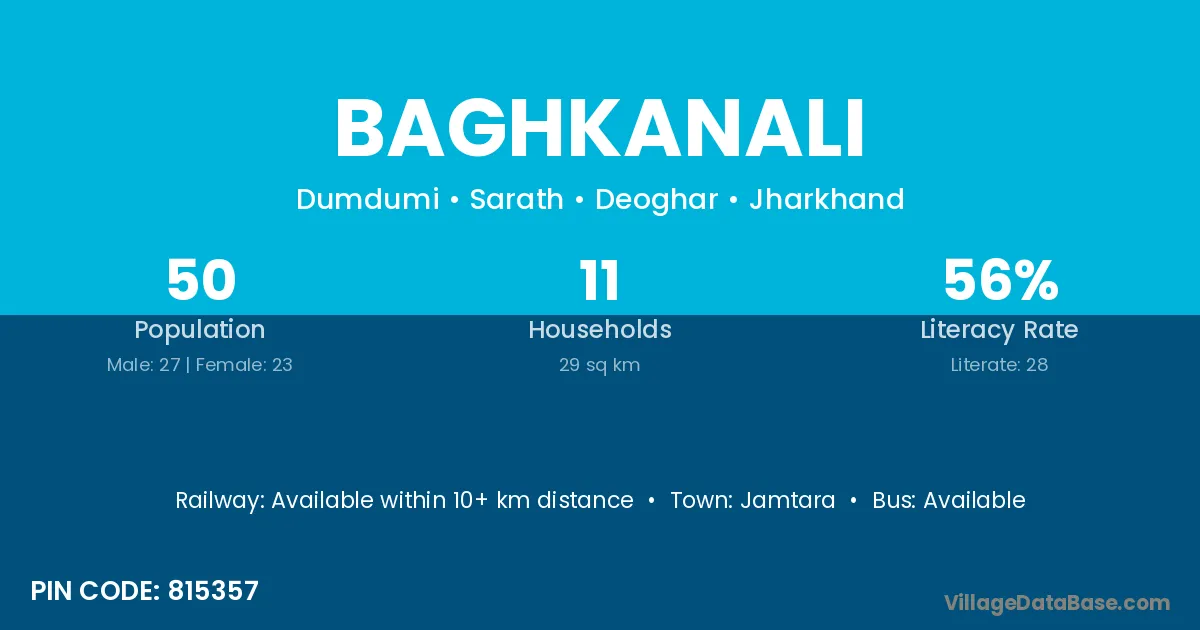 Jamtara is the nearest town to Baghkanali village for major economic activities