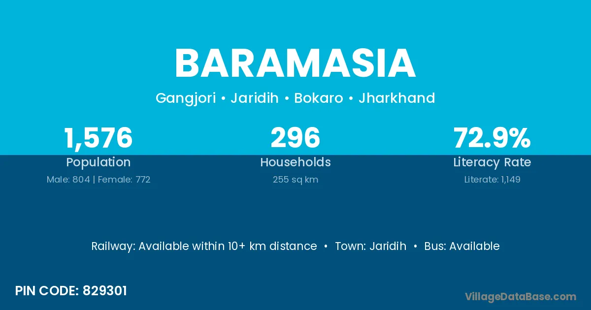 The literacy rate of Baramasia village is 50.76%. Male literacy stands at 67.56% and female literacy at 33.13%.