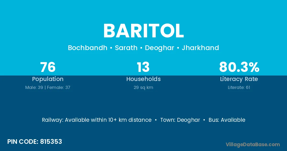 Deoghar is the nearest town to Baritol village for major economic activities