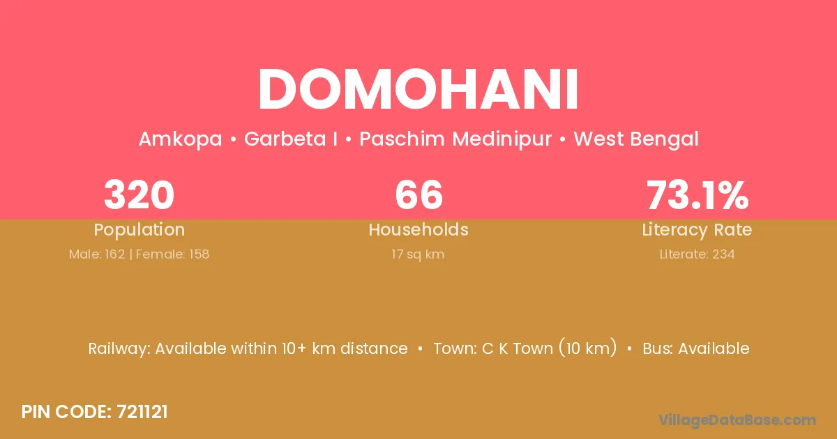 Domohani village has a total population of 133 people, of which 70 are males and 63 are females.