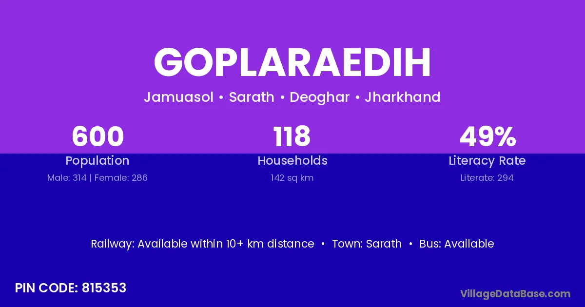 Goplaraedih village is located in the Sarath Subdivision of the Deoghar district in Jharkhand .