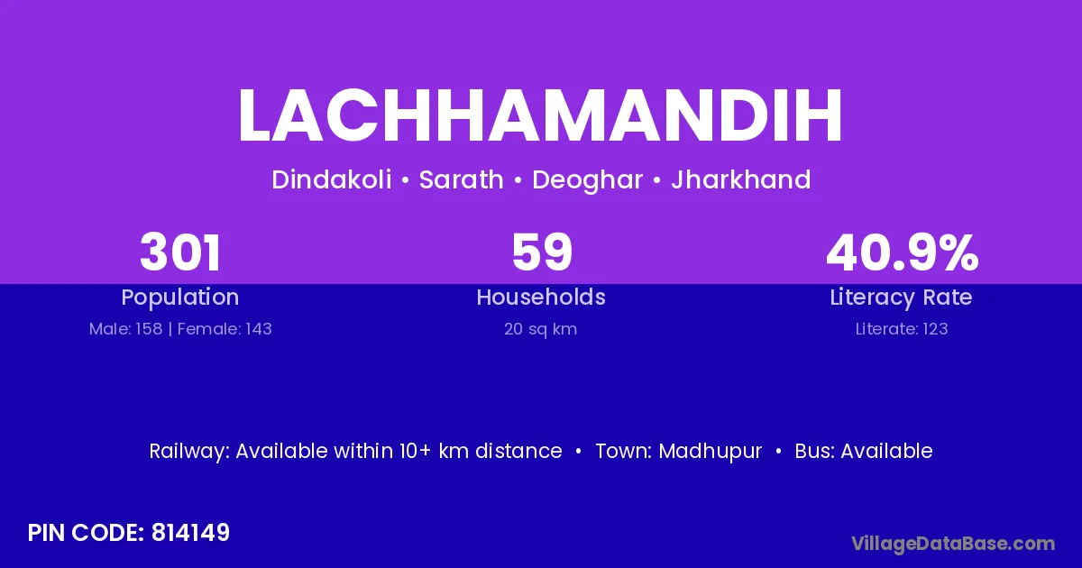 Lachhamandih village has a total population of 301 people, of which 158 are males and 143 are females.