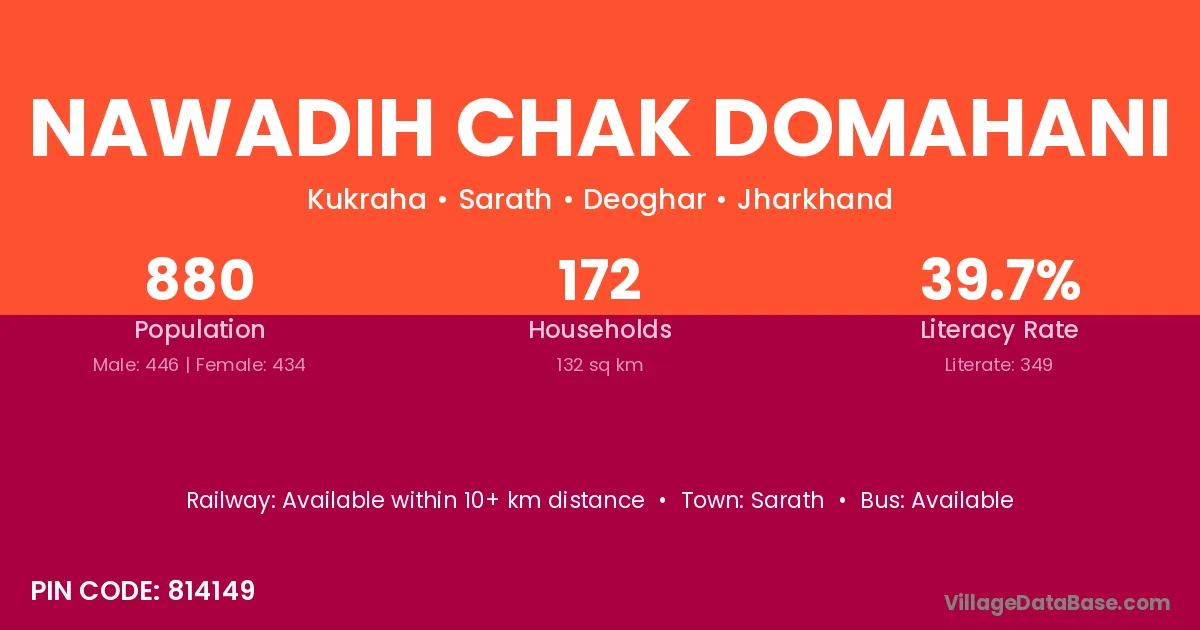 Nawadih Chak Domahani village has a total population of 880 people, of which 446 are males and 434 are females.