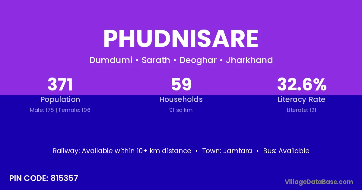 Jamtara is the nearest town to Phudnisare village for major economic activities