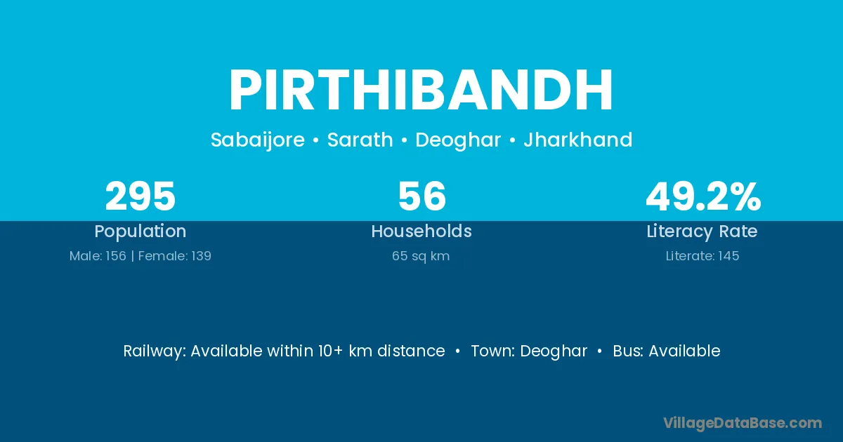 Deoghar is the nearest town to Pirthibandh village for major economic activities