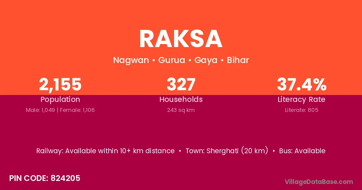 Deoghar is the nearest town to Raksa village for major economic activities