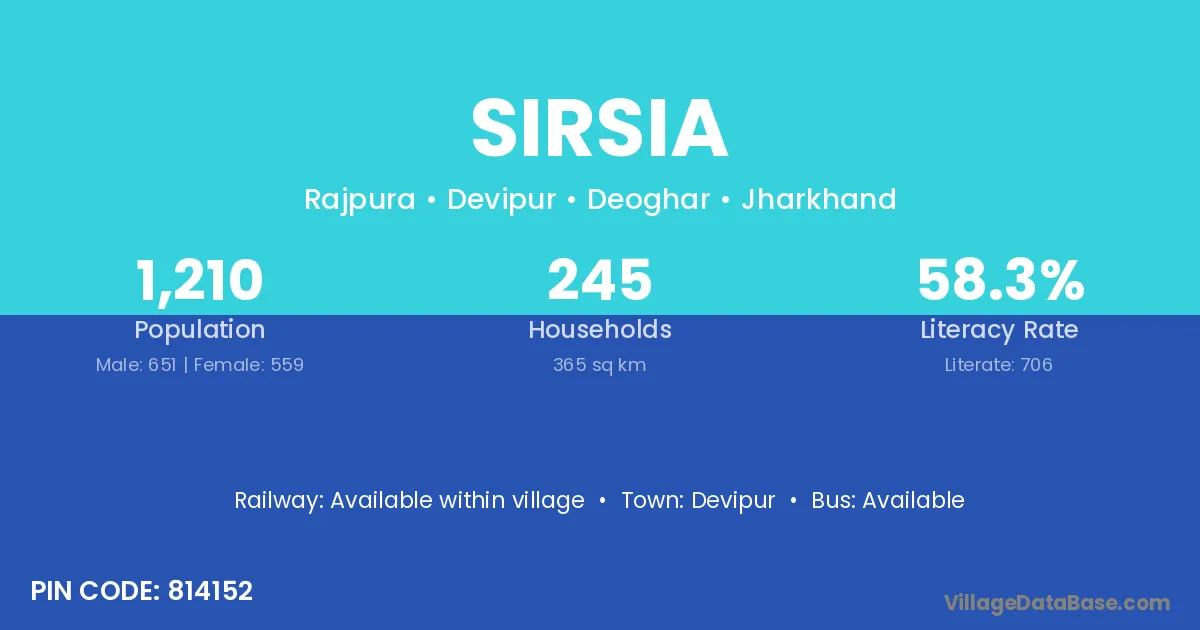 Sirsia village is located in the Sarath Subdivision of the Deoghar district in Jharkhand .