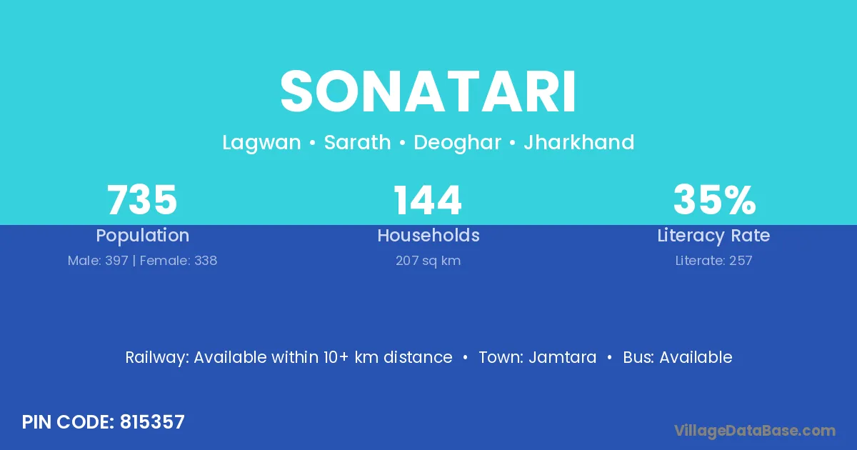 Sonatari village has a total population of 735 people, of which 397 are males and 338 are females.