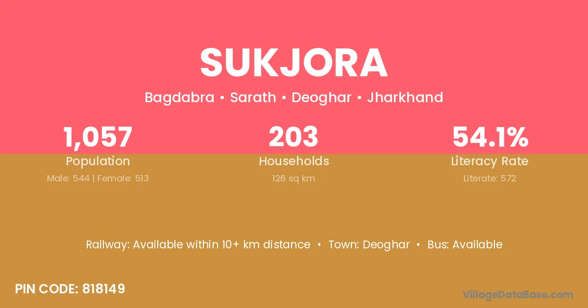 Deoghar is the nearest town to Sukjora village for major economic activities
