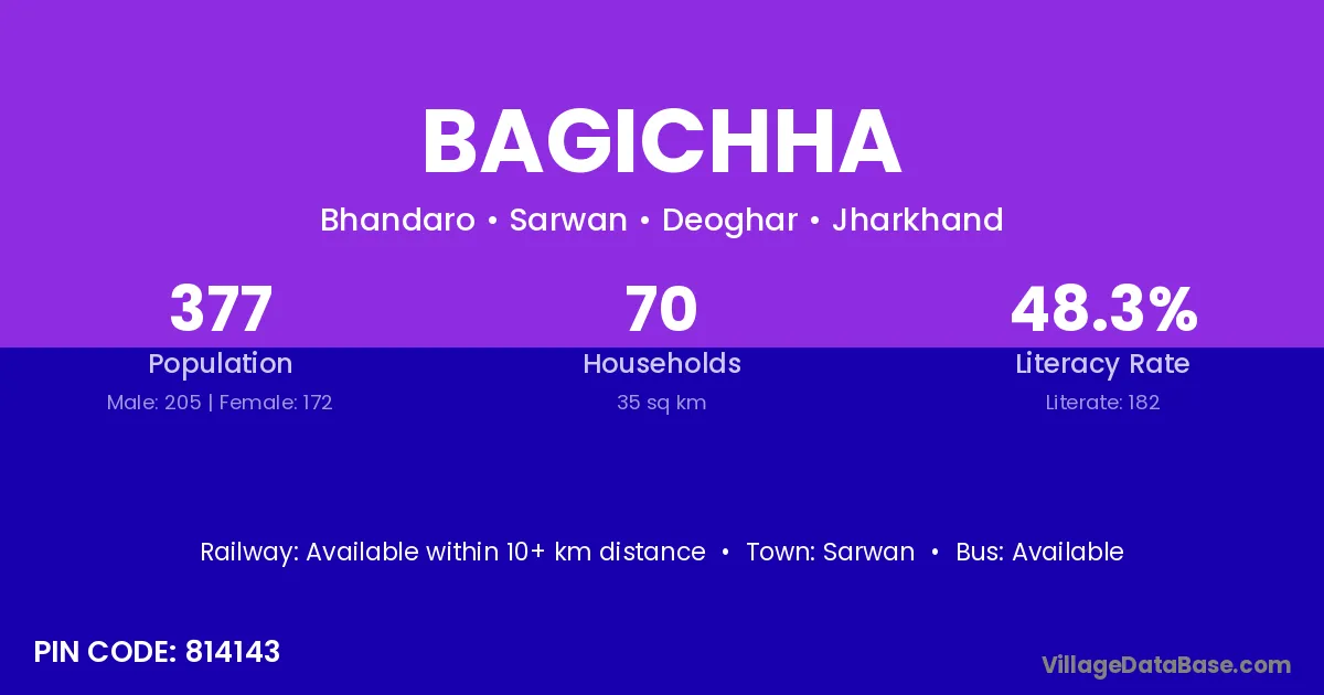 Bagichha village is located in the Sarwan Subdivision of the Deoghar district in Jharkhand .