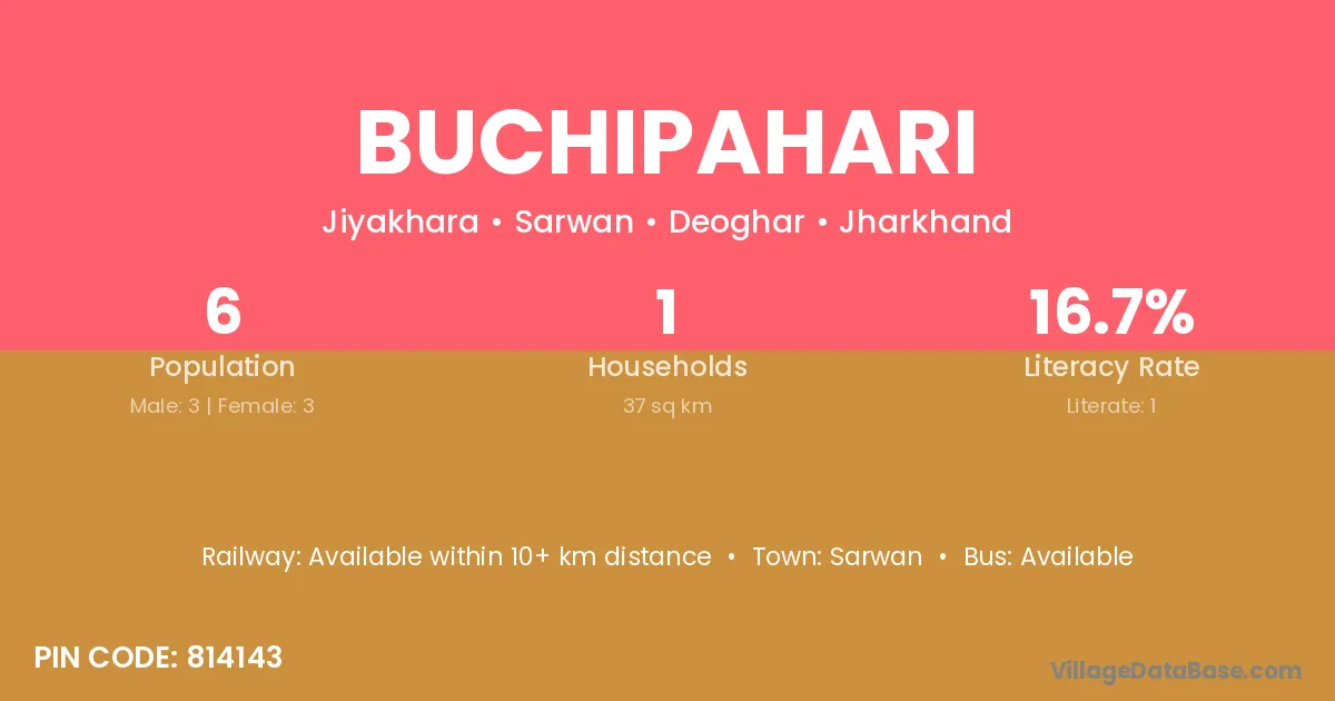 Buchipahari village has a total population of 6 people, of which 3 are males and 3 are females.