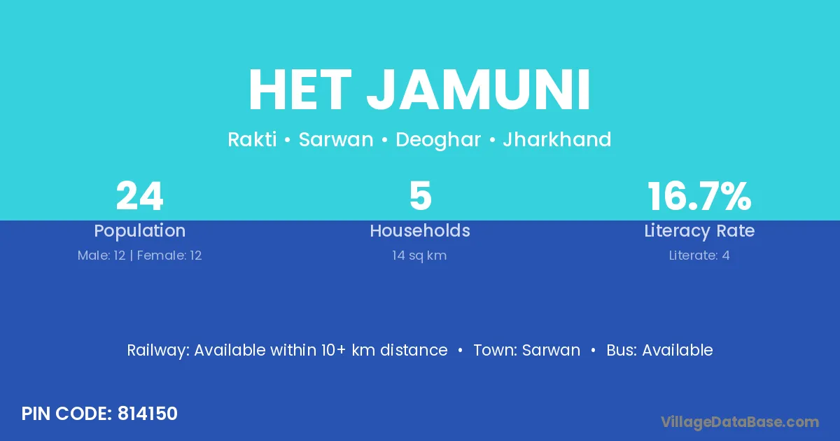 Het Jamuni village is located in the Sarwan Subdivision of the Deoghar district in Jharkhand .