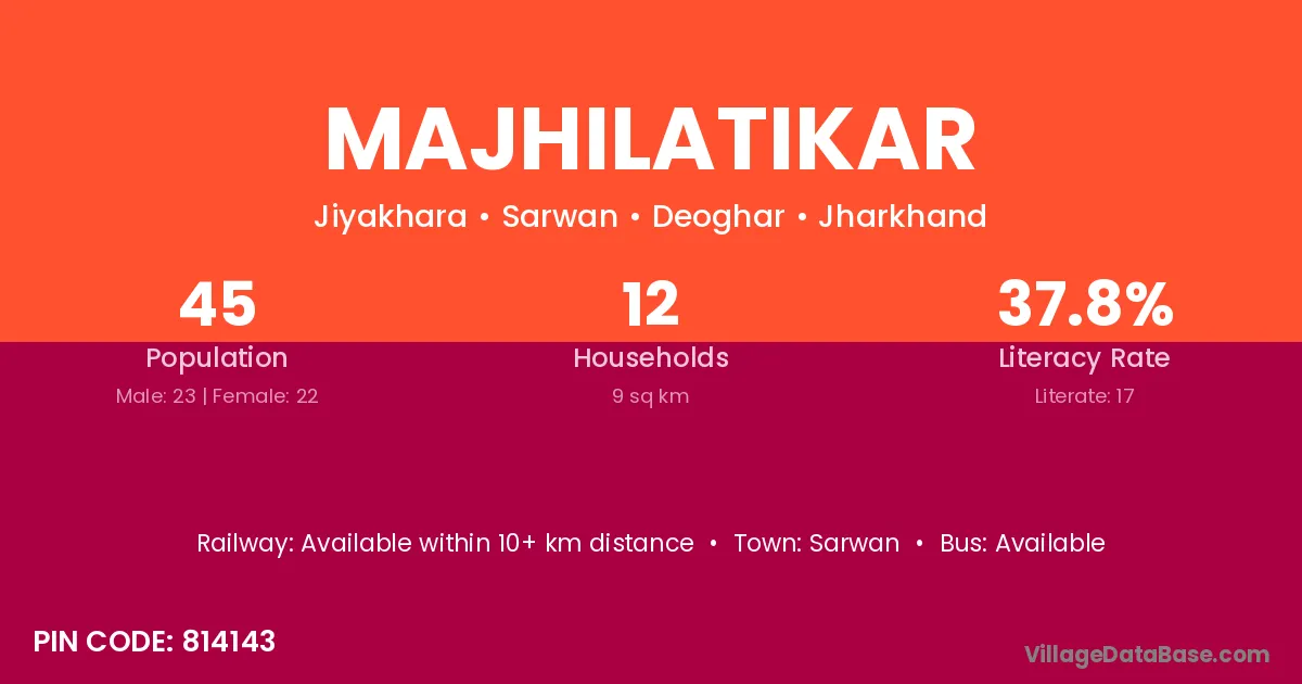 Majhilatikar village has a total population of 45 people, of which 23 are males and 22 are females.
