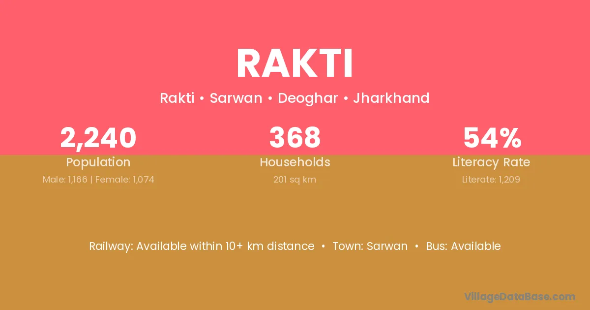 Rakti village is located in the Sarwan Subdivision of the Deoghar district in Jharkhand .