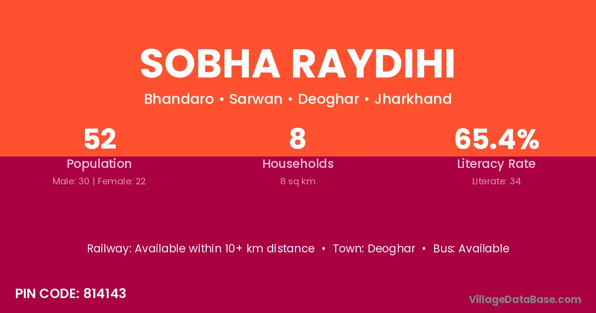 Deoghar is the nearest town to Sobha Raydihi village for major economic activities