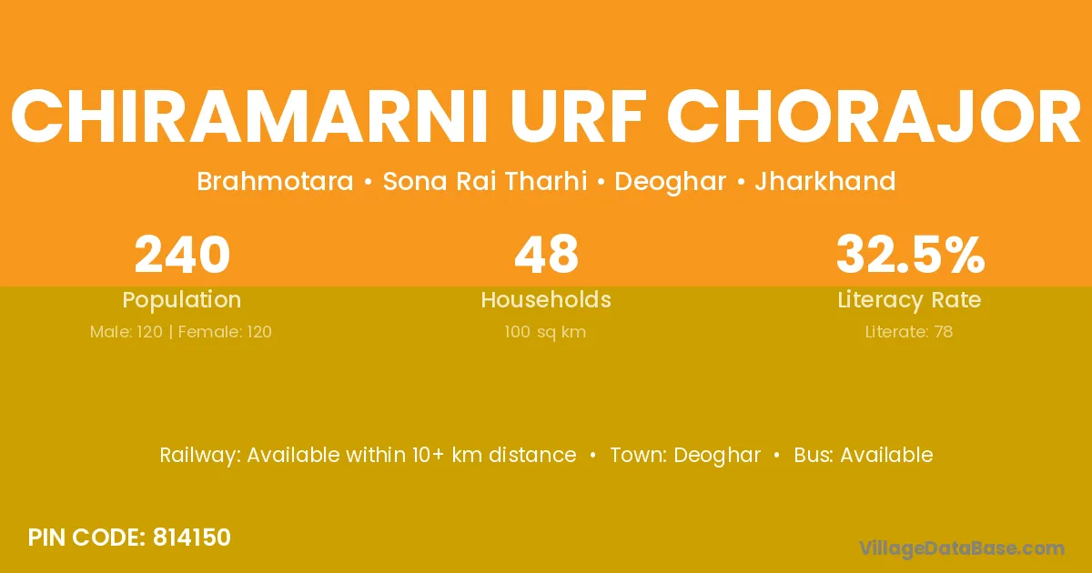 Chiramarni Urf Chorajor village has a total population of 240 people, of which 120 are males and 120 are females.