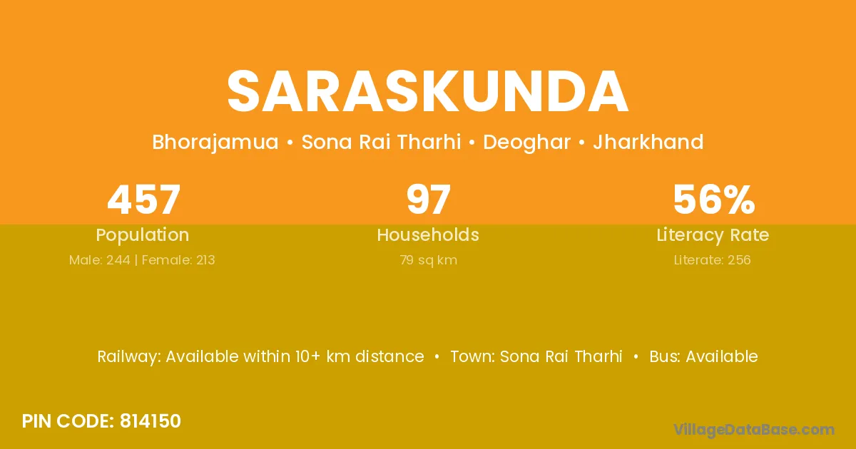 Sona Rai Tharhi is the nearest town to Saraskunda village for major economic activities