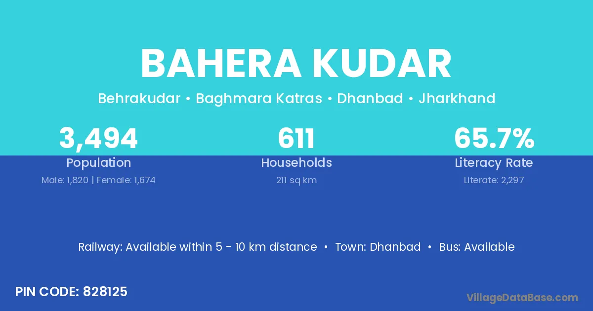 Dhanbad is the nearest town to Bahera Kudar village for major economic activities
