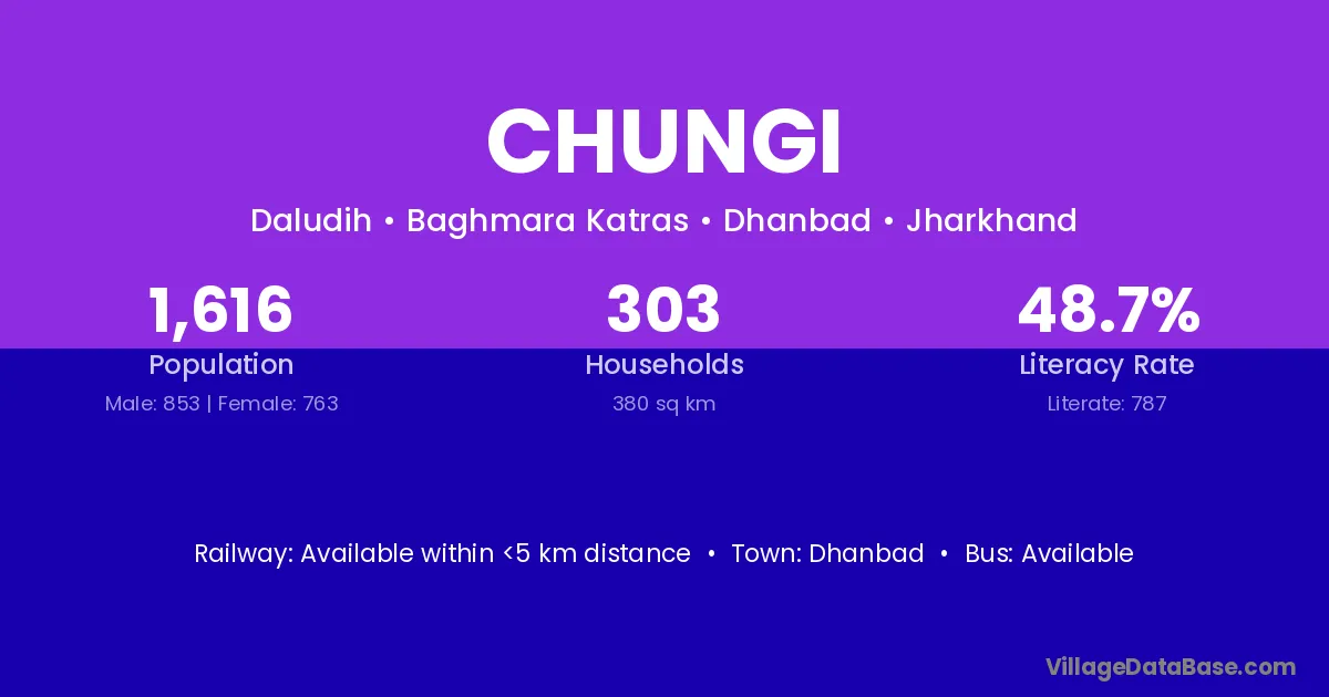 Dhanbad is the nearest town to Chungi village for major economic activities
