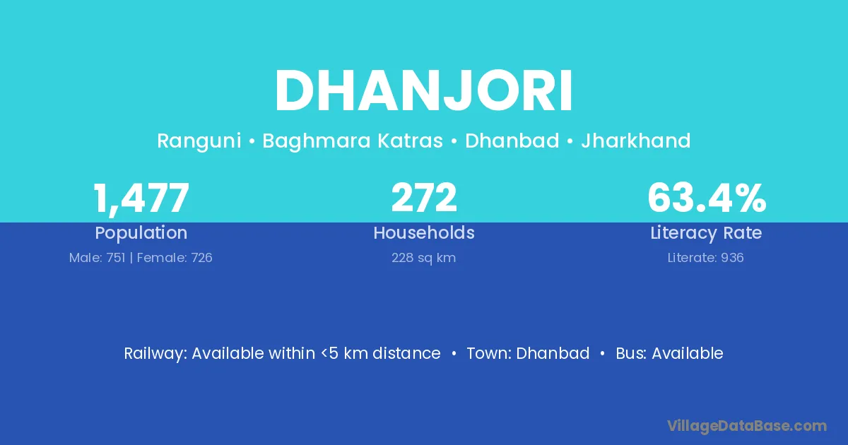 Dhanbad is the nearest town to Dhanjori village for major economic activities