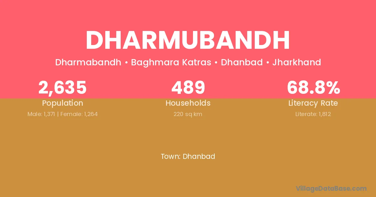 Dharmubandh village has a total population of 2,635 people, of which 1,371 are males and 1,264 are females.