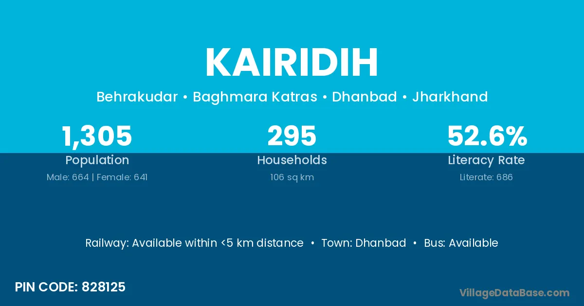 Dhanbad is the nearest town to Kairidih village for major economic activities