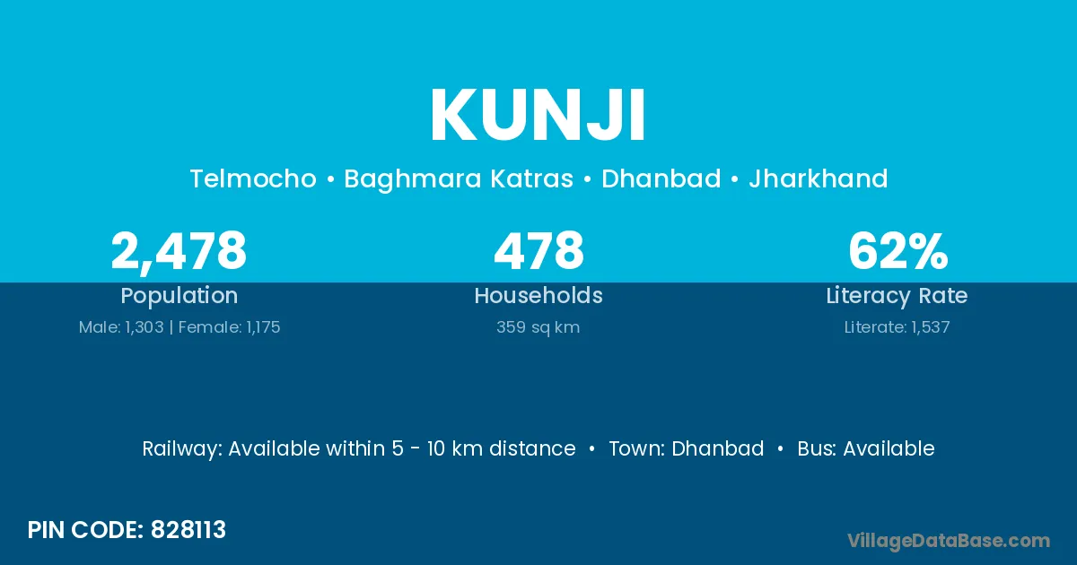 Dhanbad is the nearest town to Kunji village for major economic activities