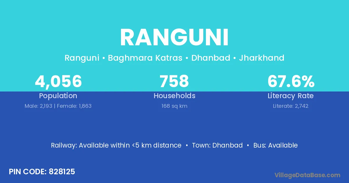 Dhanbad is the nearest town to Ranguni village for major economic activities