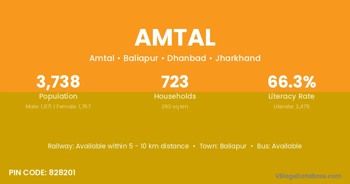 According to Census 2011 information, the village code of Amtal village is 828201.