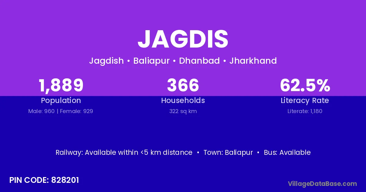 Jagdis village is located in the Baliapur Subdivision of the Dhanbad district in Jharkhand .