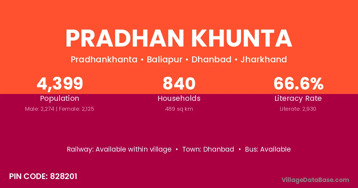 Dhanbad is the nearest town to Pradhan Khunta village for major economic activities