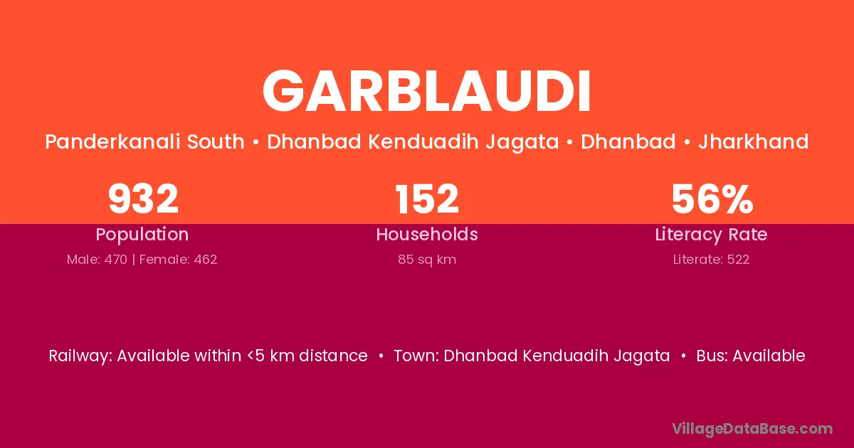 Dhanbad Kenduadih Jagata is the nearest town to Garblaudi village for major economic activities