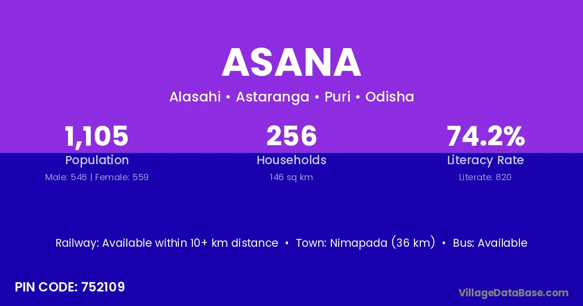 According to Census 2011 information, the village code of Asana village is 828109.