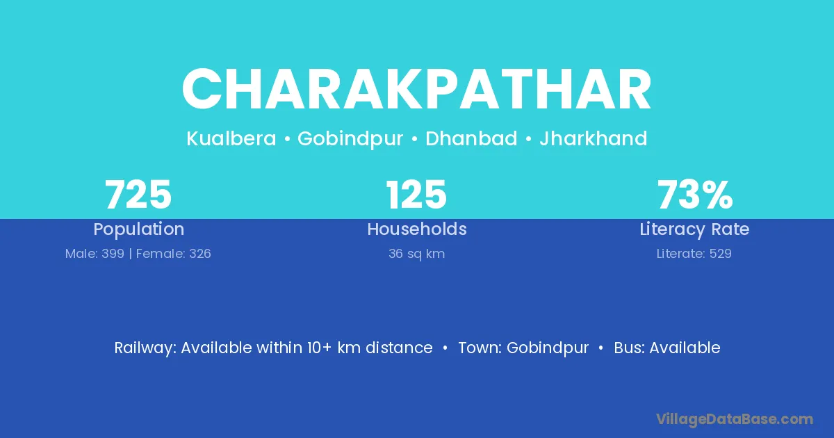 Charakpathar village has a total population of 725 people, of which 399 are males and 326 are females.