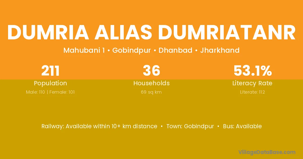 Dumria Alias Dumriatanr village has a total population of 211 people, of which 110 are males and 101 are females.