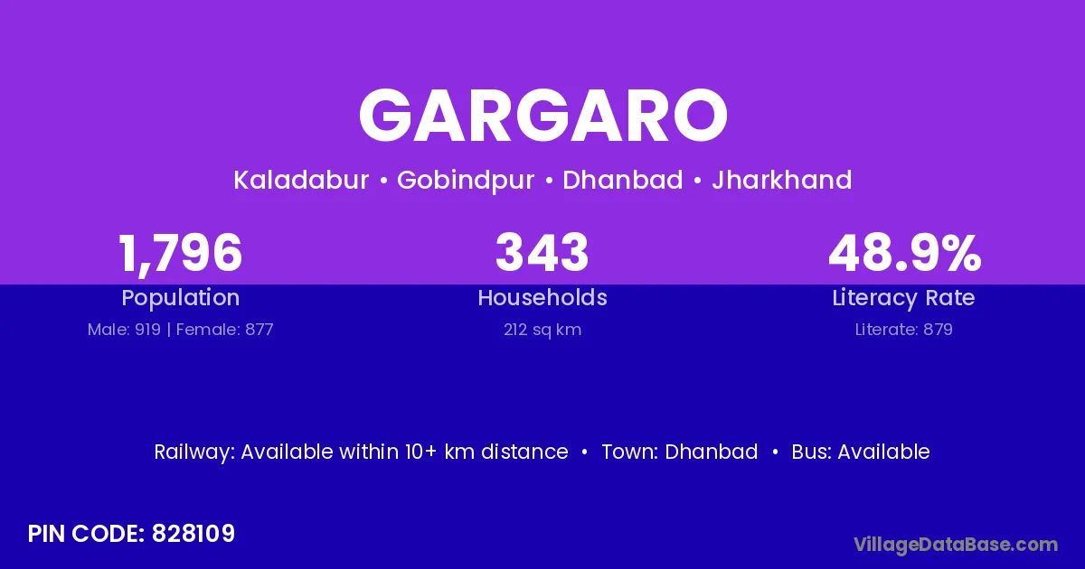 Dhanbad is the nearest town to Gargaro village for major economic activities